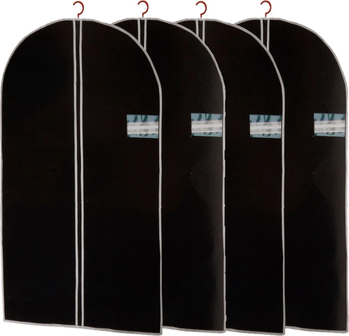 Set van 8x stuks zwarte kledinghoezen. Zwarte beschermhoezen om uw kleding stofvrij op de bergen of op een nette manier te vervoeren. De hoezen zijn voorzien van een volledige ritssluiting en een kijkvenster. Materiaal: 95% nylon, 5% polyester. Formaat: ca. 60 x 150 cm.