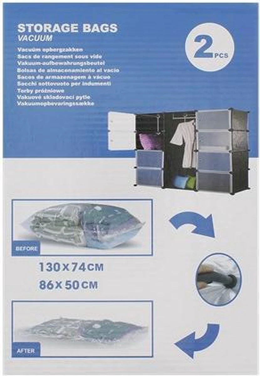 Met deze vacuum opbergzakken, houdt u stof, motten, vocht, en geurtjes uit uw kleding en ander textiel. Dit is ook een veilige manier van opbergen. Verpakt per 2 stuks.