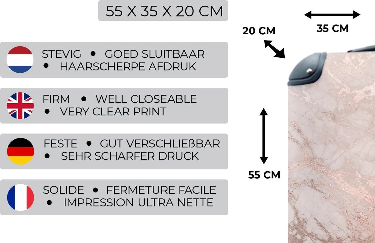 Ben je op zoek naar een hoogwaardige en trendy koffer welke ideaal is als handbagage tijdens jouw volgende reis? Dan is deze koffer van MuchoWowยฎ een absolute must-have! De koffer is speciaal ontworpen met een transparante voorkant waardoor de print van je koffer nooit zal beschadigen. Daarnaast is het mogelijk om de print van de koffer te verwisselen. Ook beschikt het over een subliem afwerkingsniveau, wat resulteert in een modieuze uitstraling.