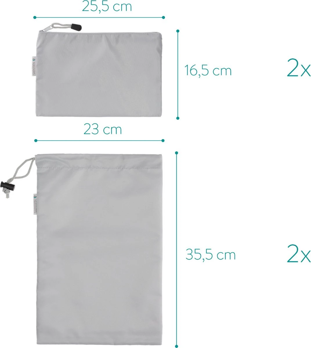 - Door het lichte gewicht en het robuuste materiaal heb je jarenlang plezier van de tassen. Tijdens je vakantie zijn de reistassen ideaal om je vuile was gescheiden van je schone kleding te bewaren.