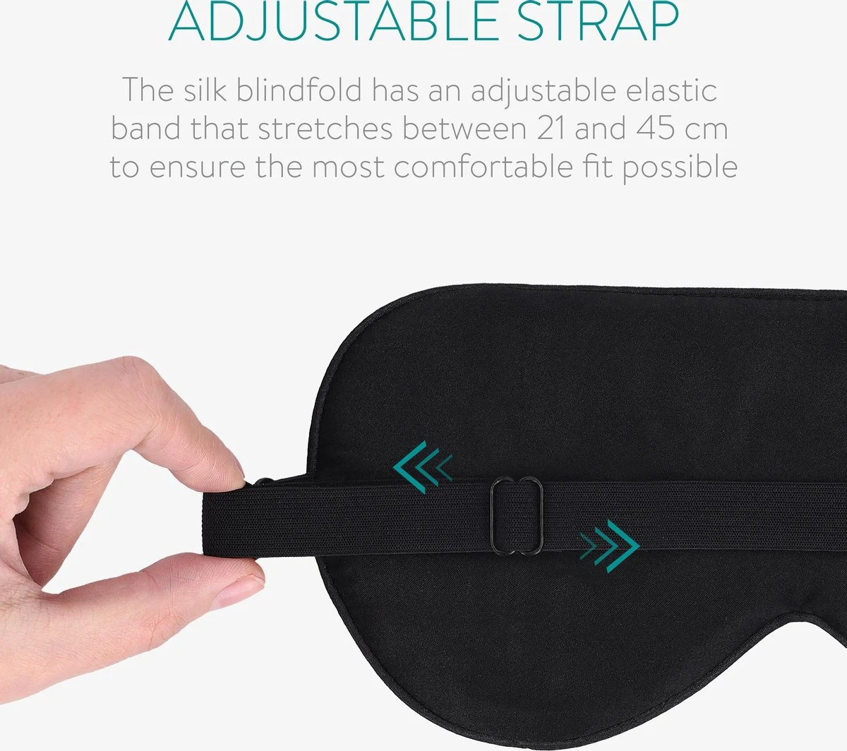 - VERSTELBAAR BANDJE: Voor optimaal comfort heeft het zijden slaapmasker een verstelbaar elastisch bandje met een lengte van 21 tot 45 cm, dat je haar niet verwart.