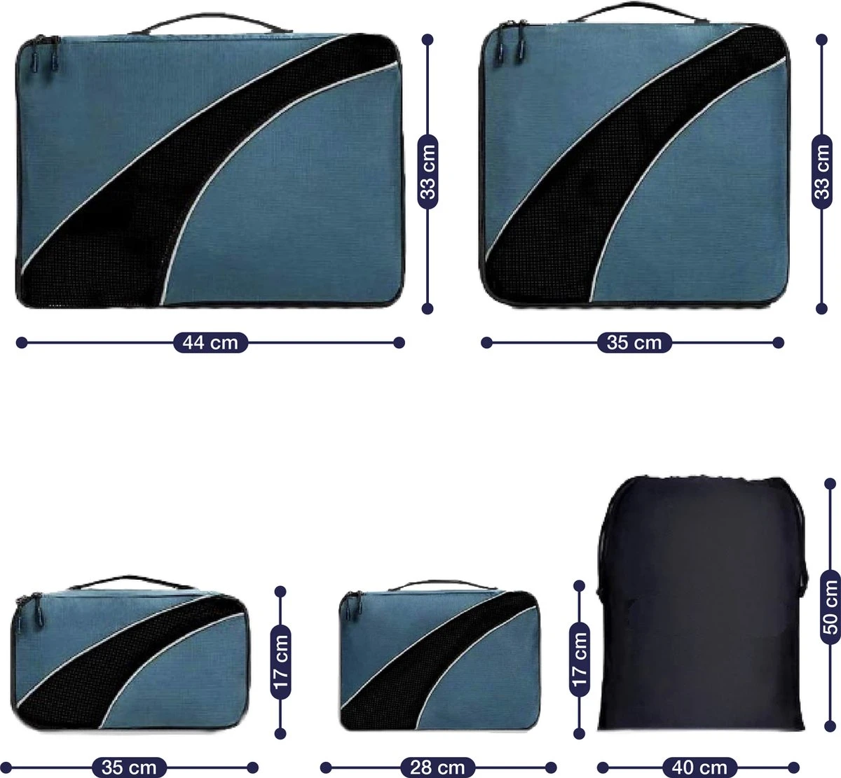 - De set bestaat uit 5 packing cubes en een grote kledingzak, zodat je voor elk kledingtype de juiste cube kunt kiezen.