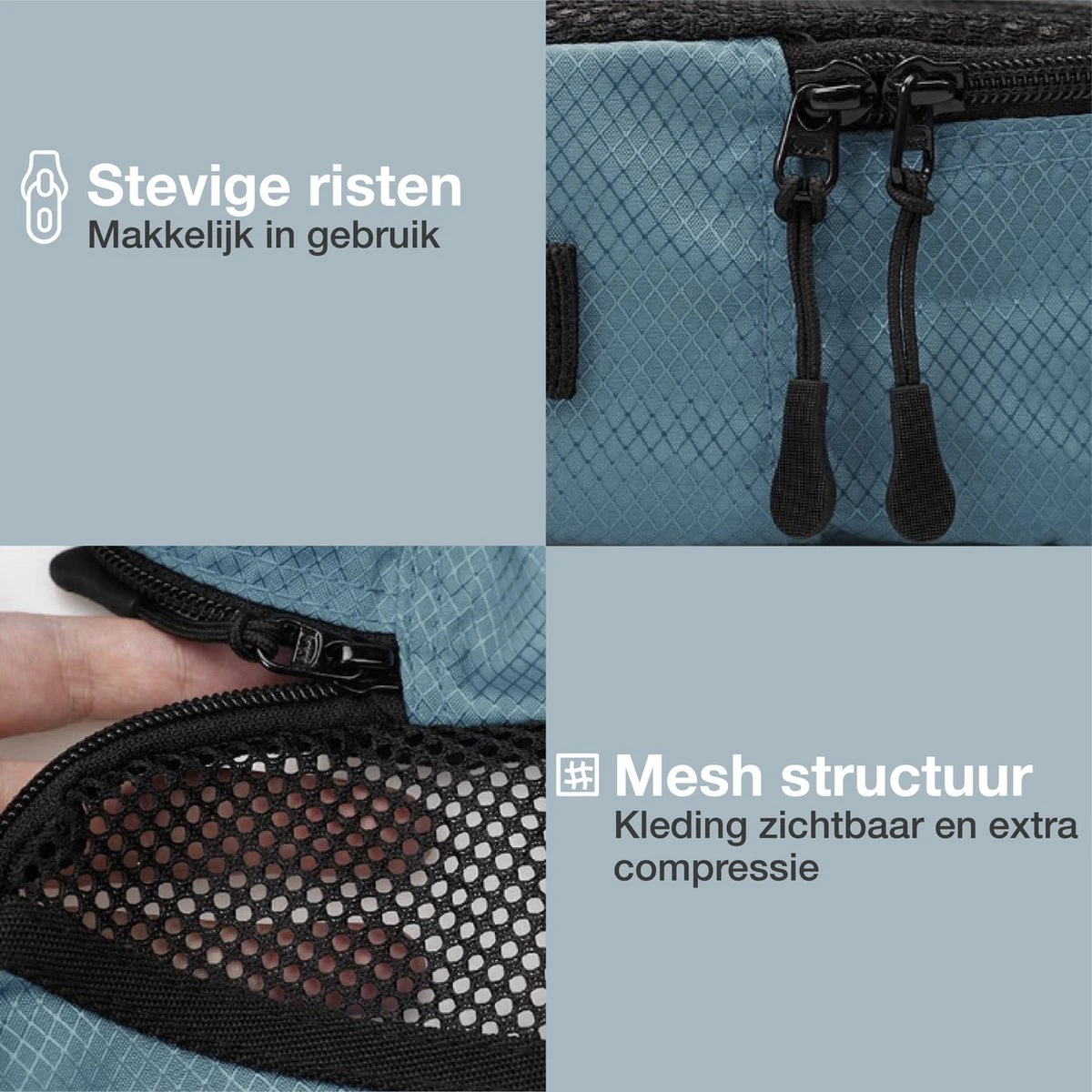 Jouw tas ook altijd een rommeltje? Met deze compression packing cubes bewaar je al je kleiding geordend in je koffer of backpack. Een echte must-have voor een backpacker zodat je kleding makkelijk uit je backpack kunt halen en alles netjes gescheiden blijft. De compression zorgt ervoor dat je tot wel 20% meer kleding kunt meenemen.
