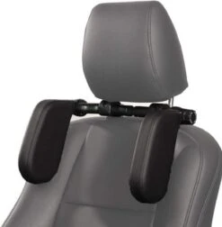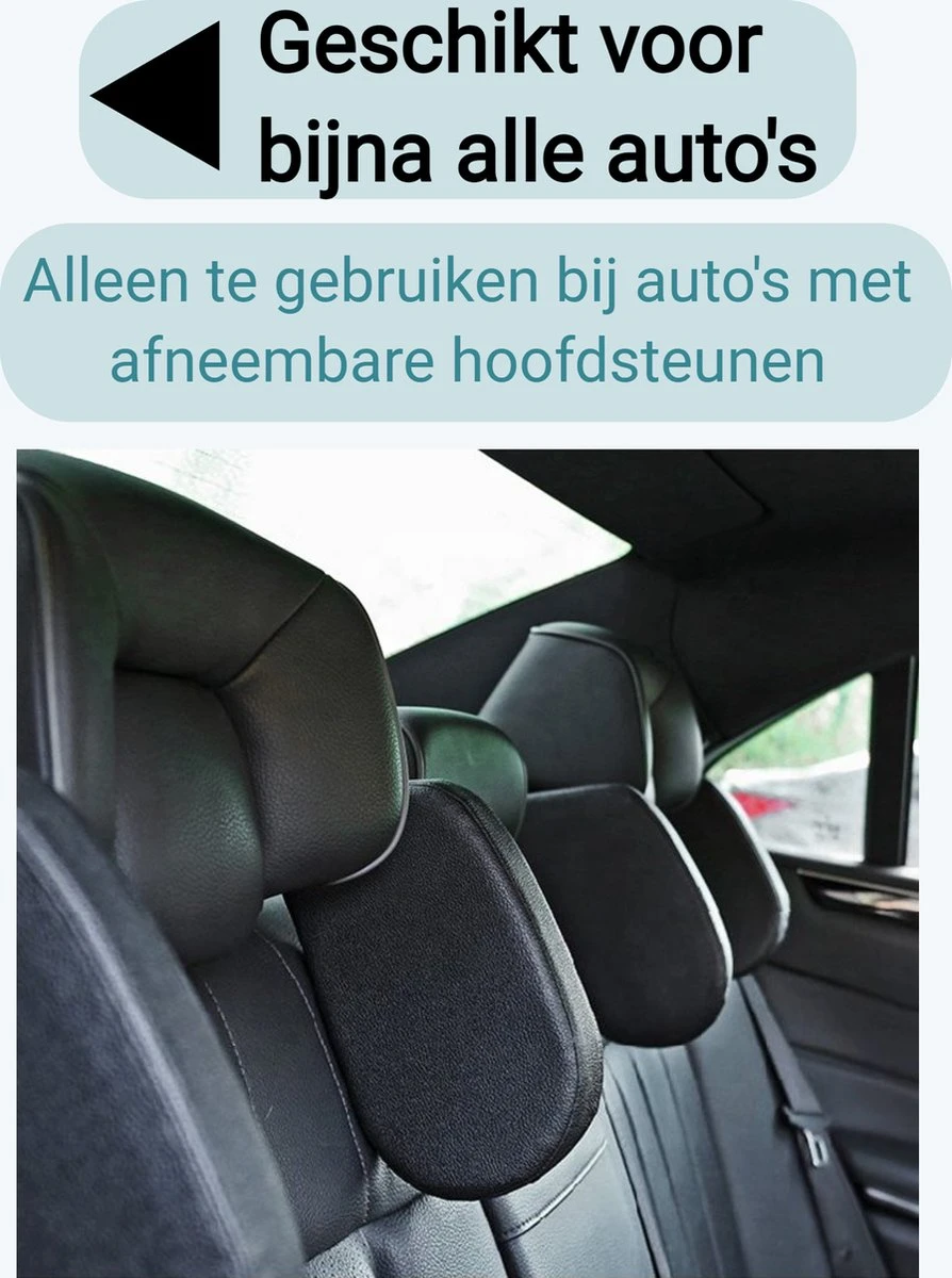 Aan beide zijde zit een kussen van de hoofdsteun, dit kussen is opgevuld met zacht dik traag schuim. Met daaromheen 1 zwarte leren hoes die gemakkelijk te reinigen is. Het hoofdkussen is bedoeld voor de passagiers om ze lekker en comfortabel een dutje te laten doen tijdens de autorit. Het hoofdkussen is 180gaden te draaien of je nou groot of klein bent het past altijd bij uw lengte. Het hoofdkussen kunt u eenvoudig binnen 1 minuut monteren, ook het demonteren gaat heel eenvoudig. Door beide zijdes naar elkaar toe de drukken kunt u hem zo tussen de hoofdsteunpaal uit halen.