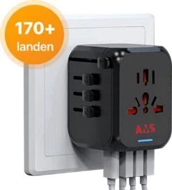 AMS® Universele Wereldstekker Met 1x USB-C En 3x USB Poorten – Reisstekker – Wereldstekker – Internationale Reisstekker Voor 150+ Landen – Reizen – Amerika (USA) – Engeland (UK) – Australië – Azië – Zuid Amerika – Afrika – Reis Adapter En Oplader