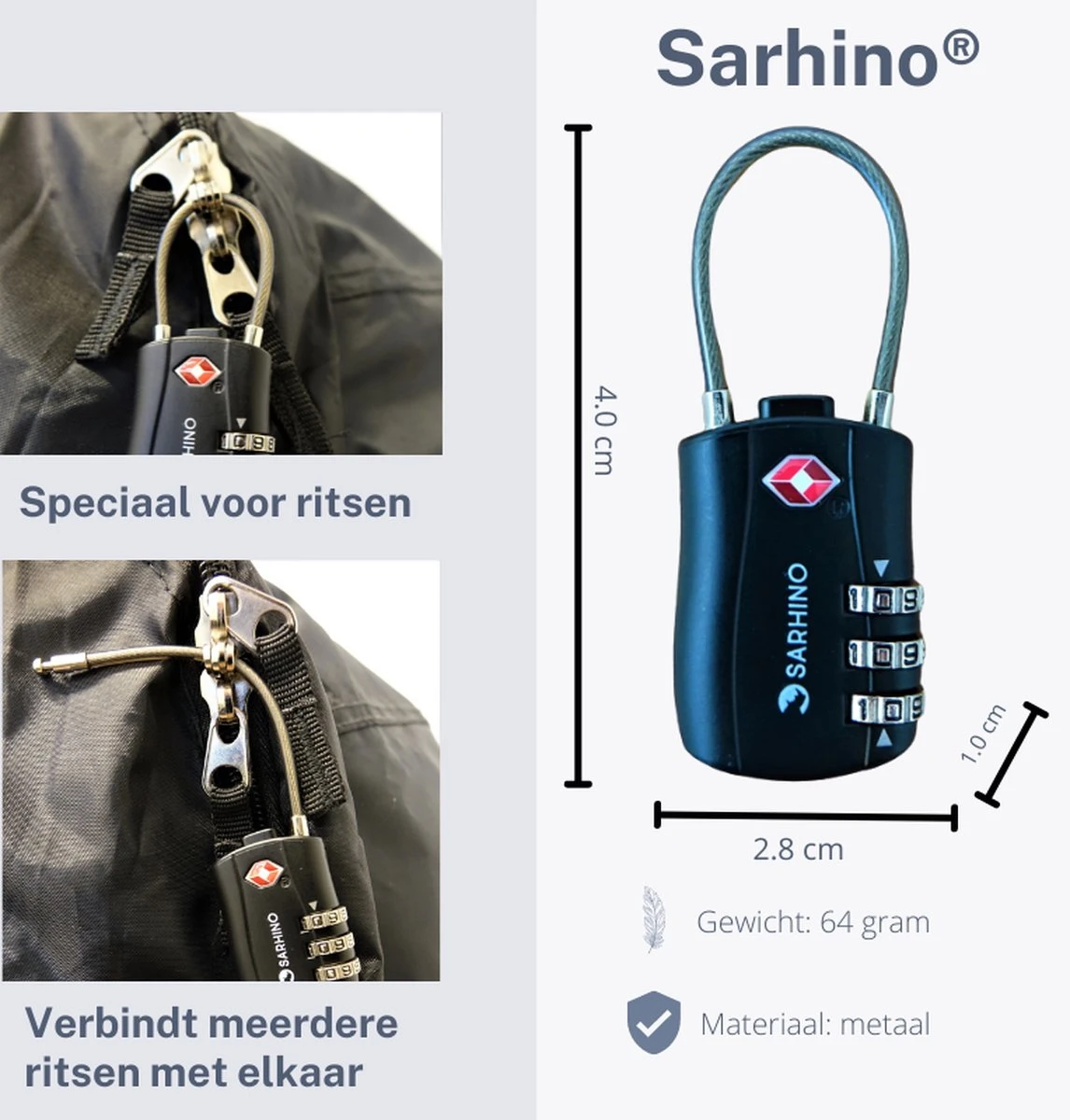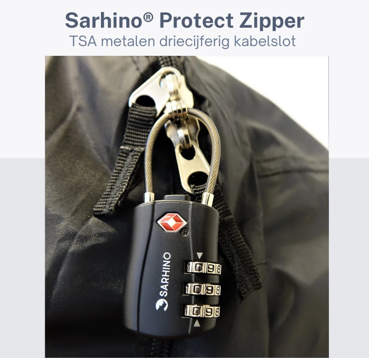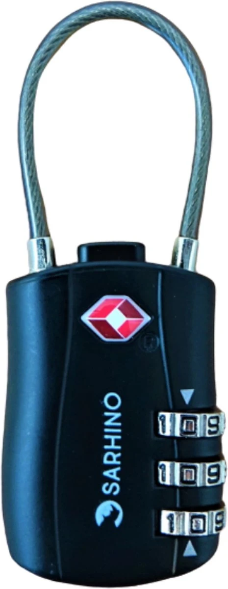 Sarhino Protect Zipper TSA driecijferig kabelslot – zwart