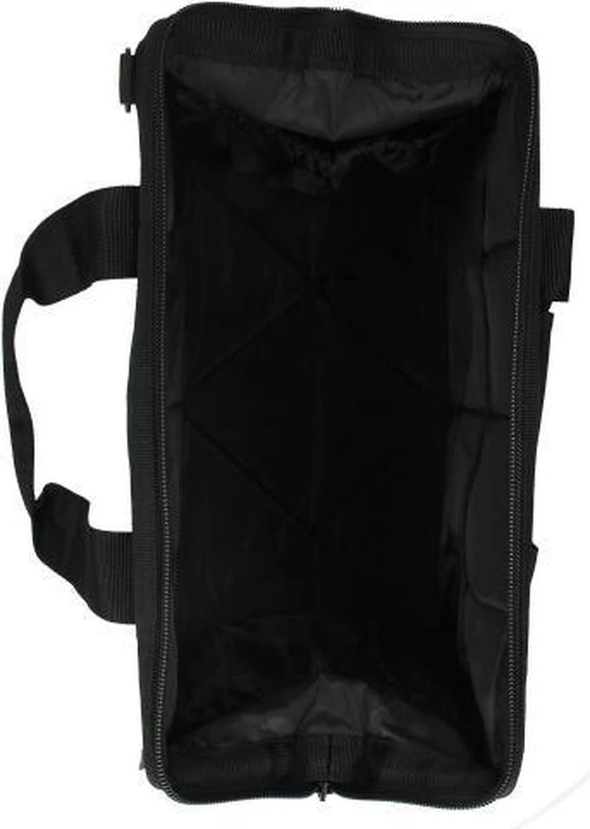 โข Opening met een ritssluiting en metalen beugels voor een extra brede opening