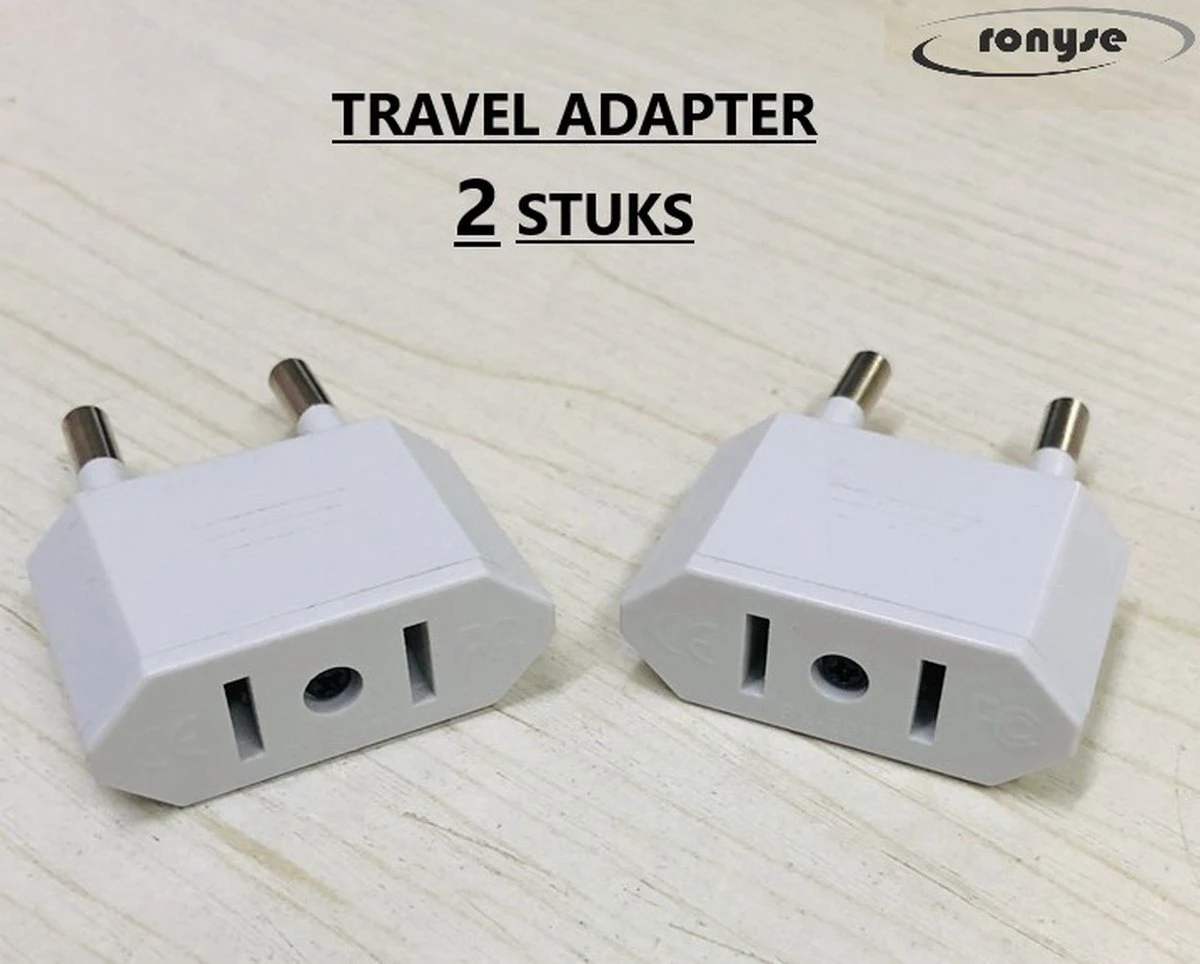 Stekker US-EU Adapter waarmee elektronische apparaten met een platte Amerikaanse stekker in Nederlandse stopcontacten passen. U krijgt 2 stekkers!