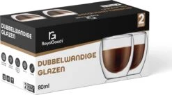 BLERGH! Heb je net je bak koffie gezet en een paar tellen later is het al koud… Gelukkig hoef je dat probleem niet meer te hebben door de speciaal ontworpen glazen met dubbele wanden van RoyalGoods®. Pak een bakkie, ga zitten en geniet.