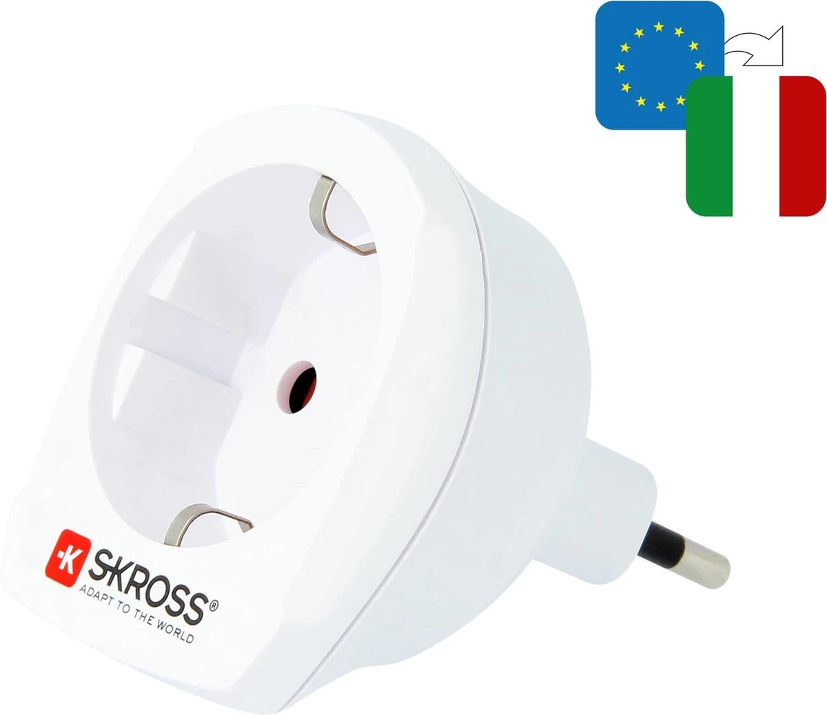 Het Italiaanse standaard stopcontact wordt in 9 landen ter wereld gebruikt. Onze SKROSS® Country Adapter Europa naar Italië biedt een betrouwbare en eenvoudige aansluiting voor apparaten met een Schuko- of Eurostekker, zodat apparaten die veel stroom nodig hebben, zoals laptops en haardrogers, veilig kunnen worden gebruikt.