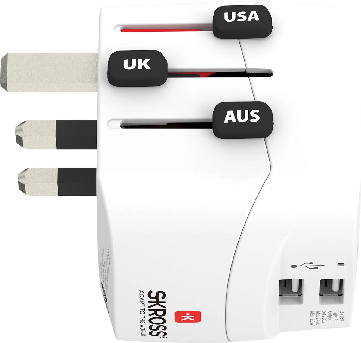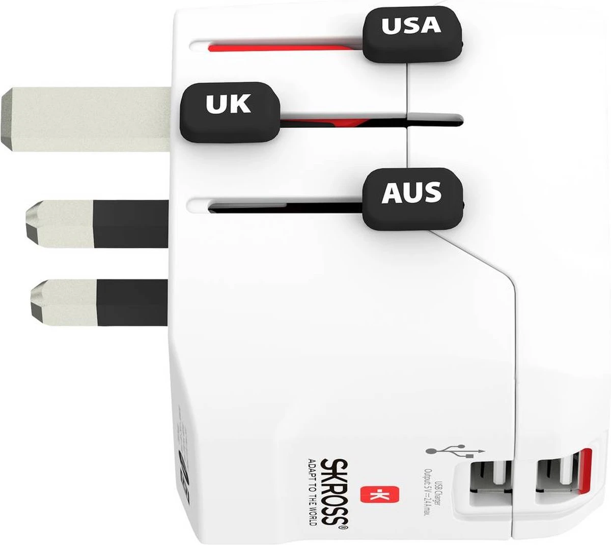 De PRO Light USB (2xA) zorgt voor een eenvoudige en veilige aansluiting van 2- & 3-polige apparaten uit Europa (Schuko & Euro) op meer dan 100 bestemmingen. Kan tot 1680 W vermogen aan, zodat u zelfs krachtige apparaten zoals laptops of reisfรถhns kunt aansluiten. Dit is de veiligste manier om overal ter wereld apparaten aan te sluiten. Bovendien biedt de dubbele USB-poort met 2,4 A voldoende energie om twee USB-apparaten gemakkelijk op te laden, zelfs als er tegelijkertijd een ander apparaat via de adapter is aangesloten.
