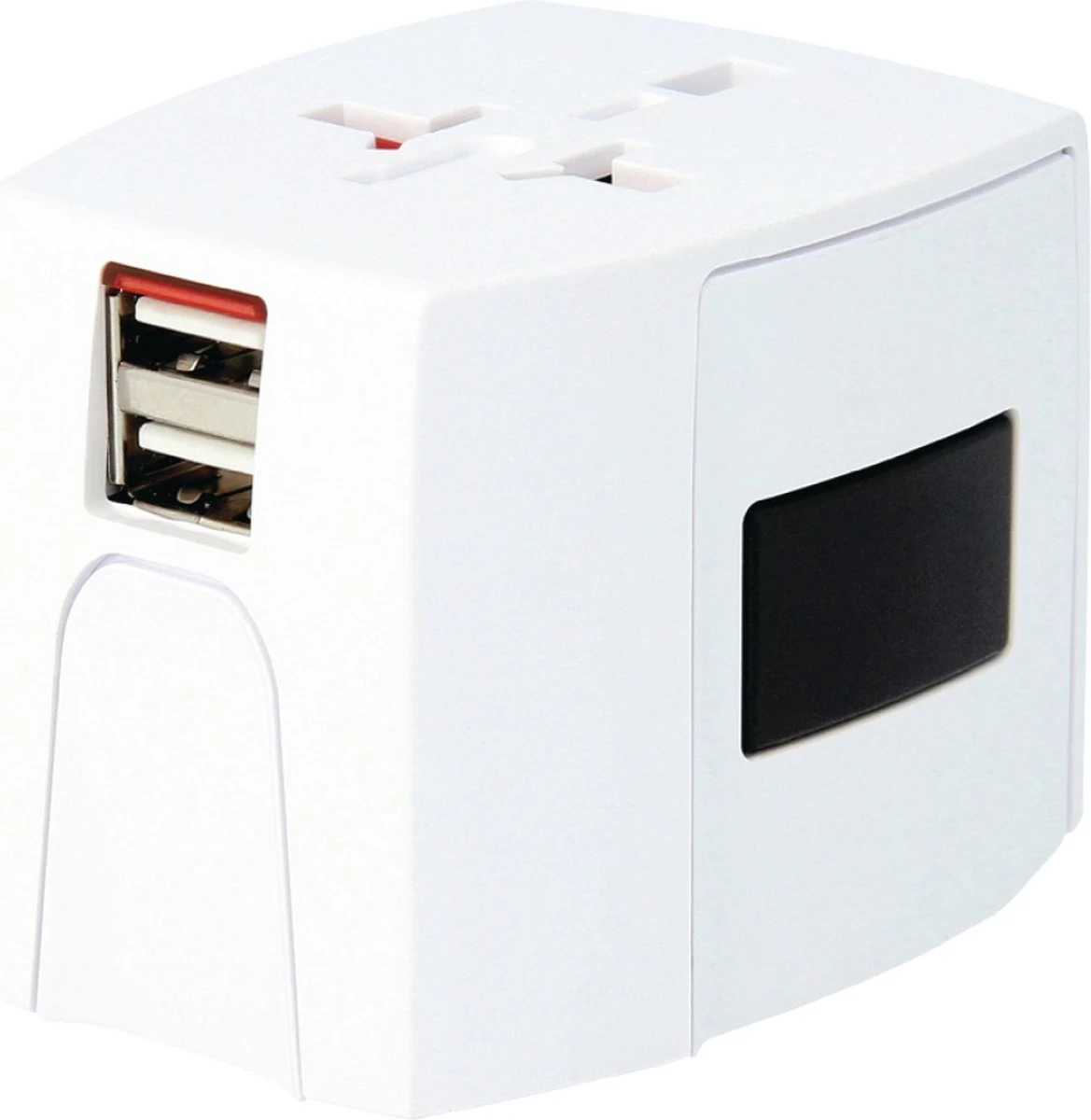 Met deze wereldstekker is het mogelijk om twee USB apparaten en een ongeaard apparaat aan te sluiten. Het is de veiligste manier om je niet-geaarde apparaten over de gehele wereld aan te sluiten.