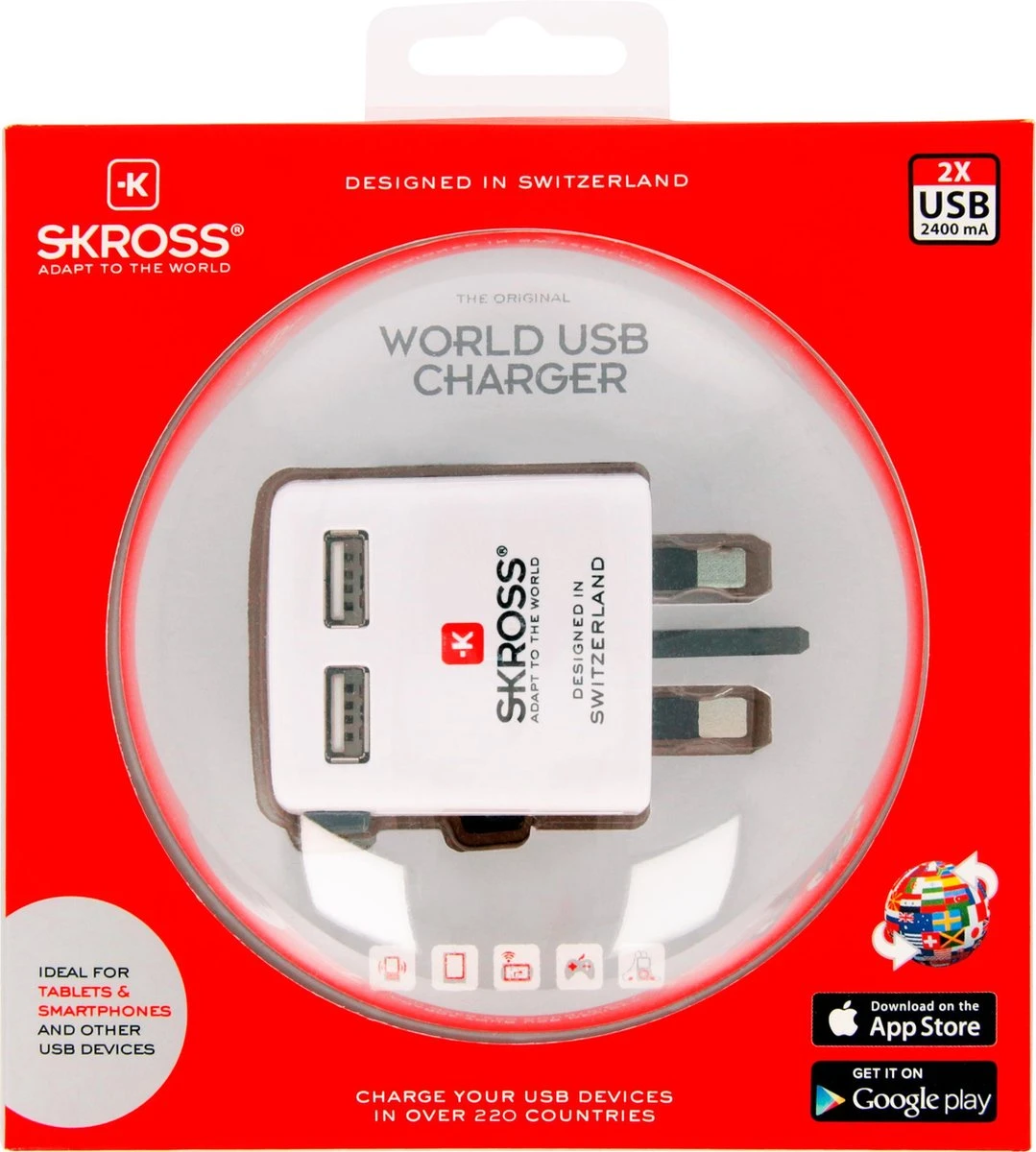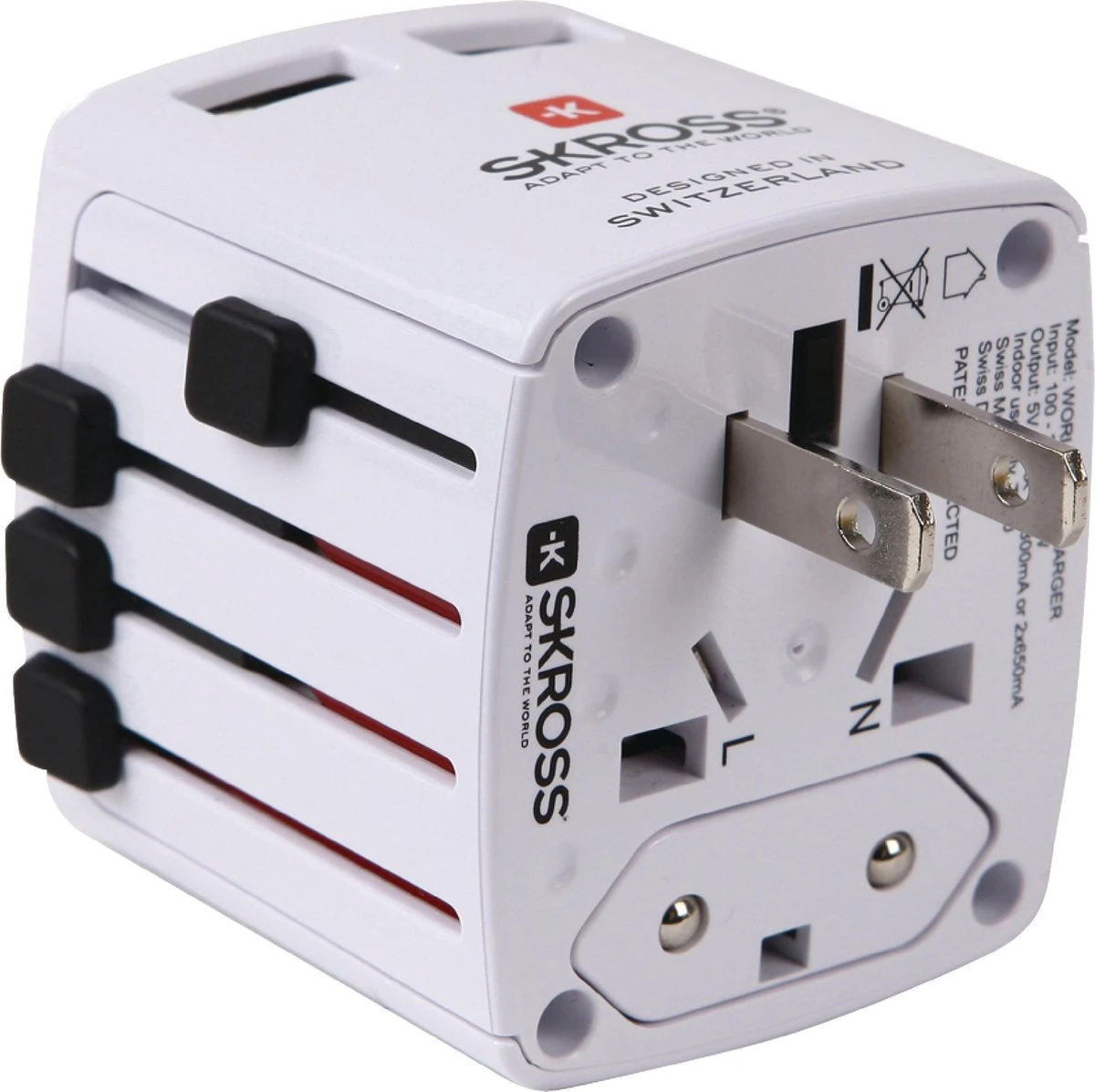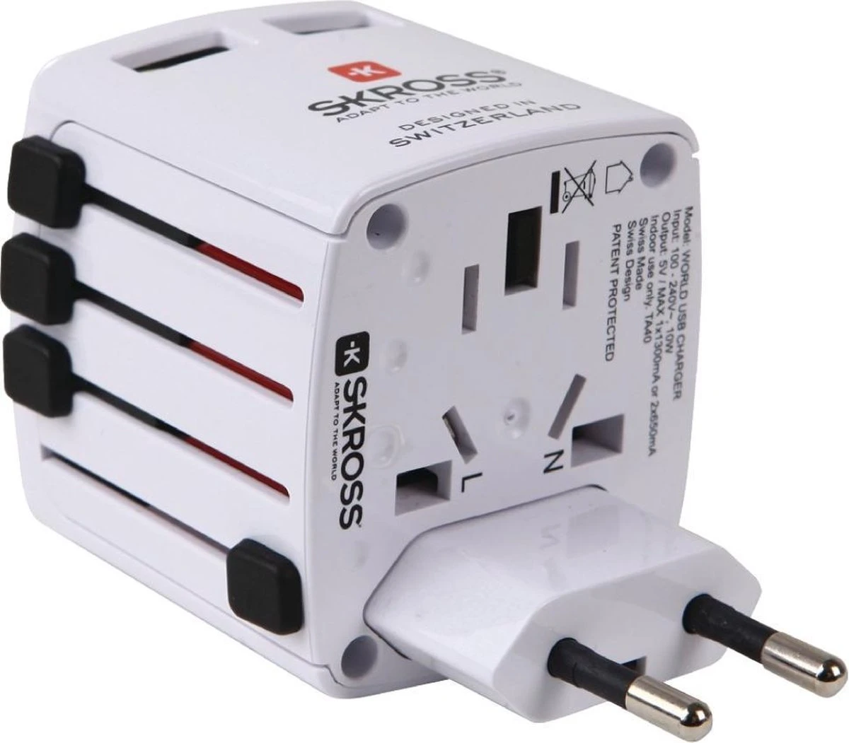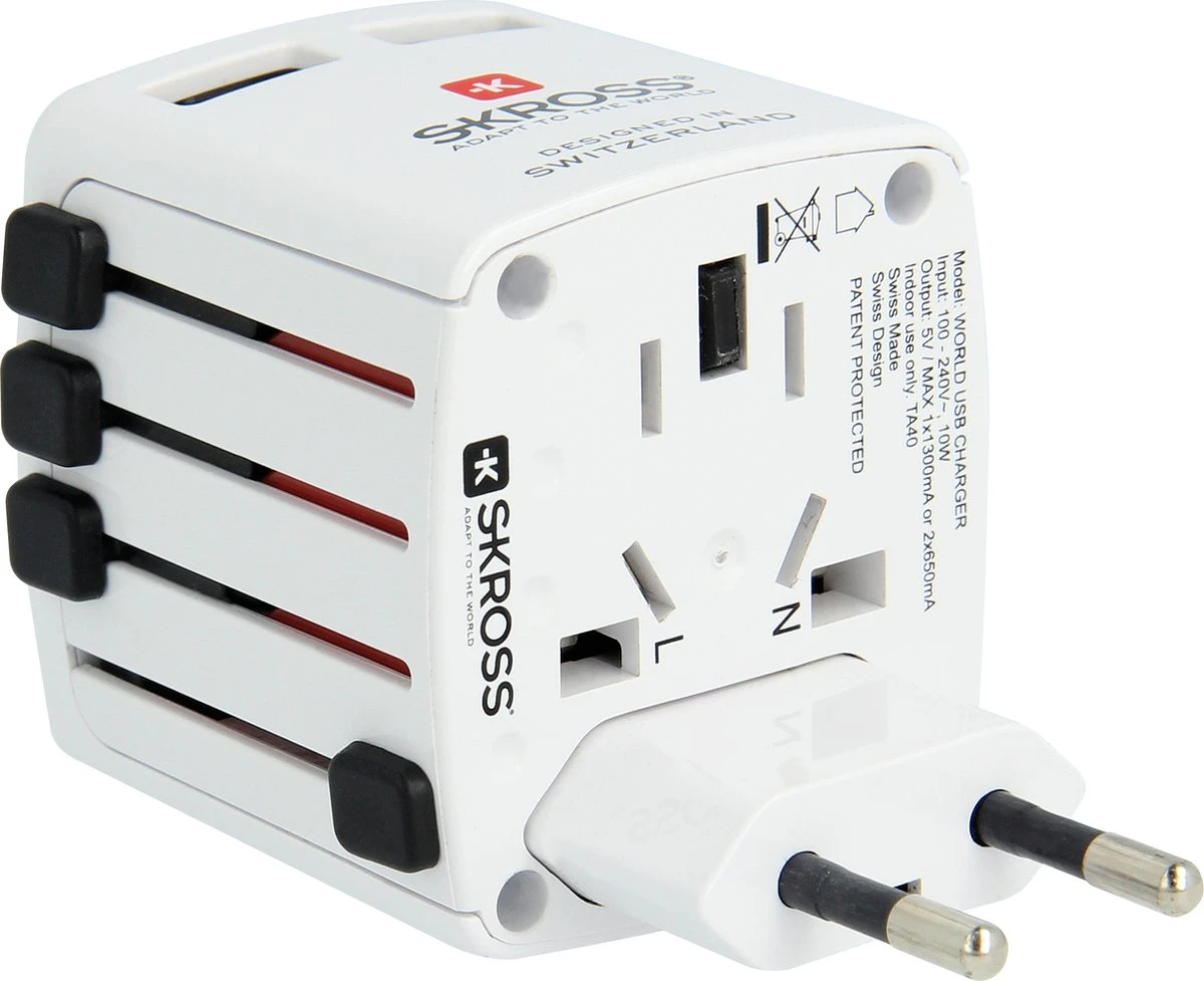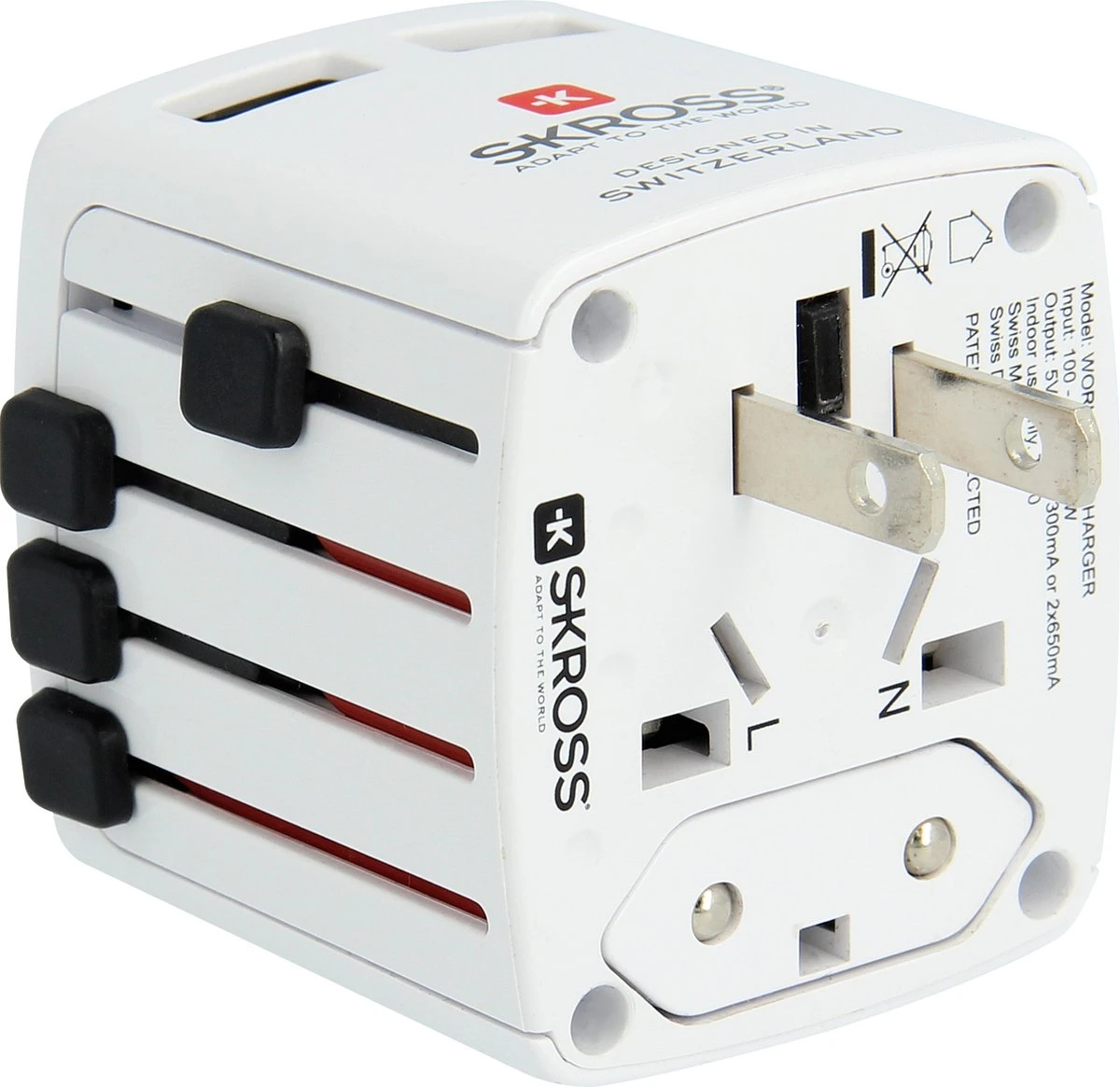 Met de World USB Charger kunt u tegelijkertijd twee USB-apparaten in meer dan 150 landen opladen, dankzij het gepatenteerde schuifplugmechanisme.