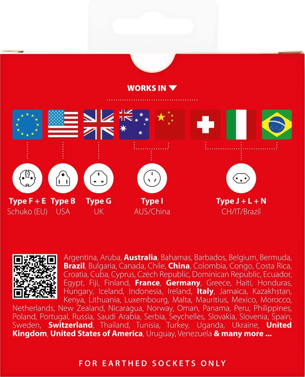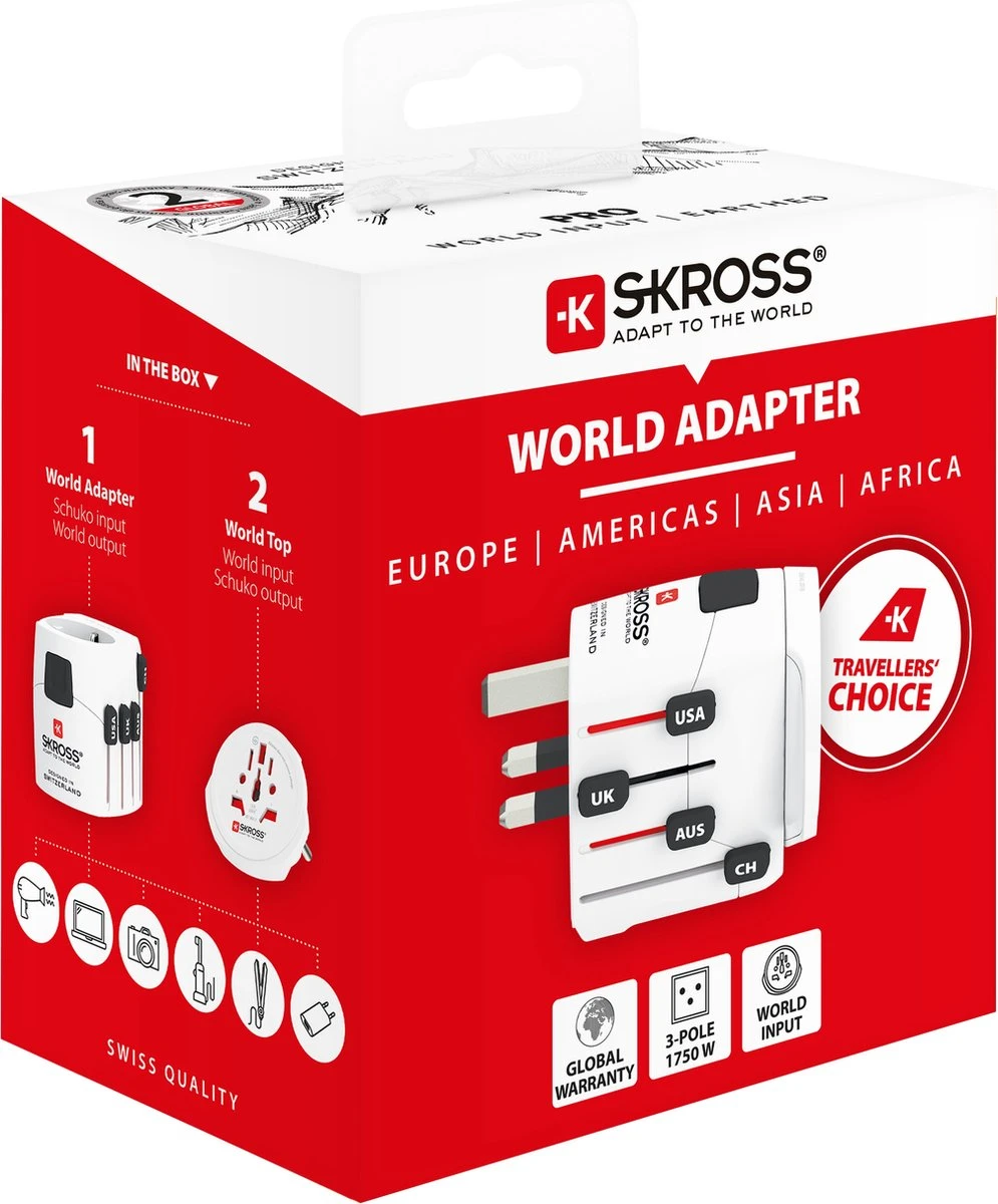 De veelzijdige reisadapter PRO – World zorgt voor een eenvoudige en veilige aansluiting van 2- en 3-polige apparaten van en naar meer dan 205 bestemmingen. Met een vermogen tot 1750 W kunt u zelfs krachtige apparaten zoals laptops of reisfรถhns aansluiten. Waar de reiziger ook vandaan komt, de universele adapter PRO – World biedt de veiligste oplossing voor het aansluiten van apparaten over de hele wereld.
