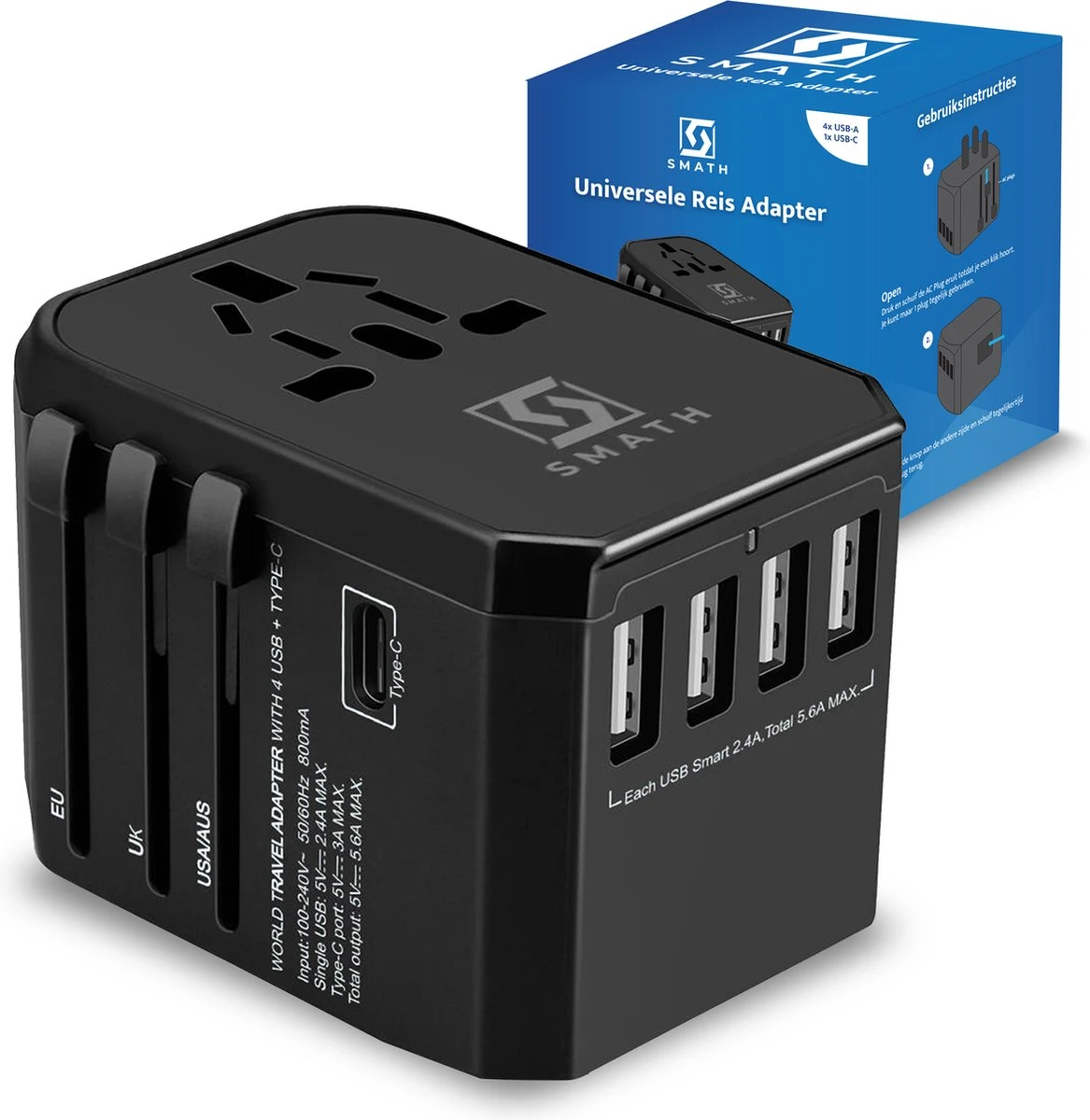 - Geschikt voor 150+ landen – of je nu naar Europa, Amerika of Australië gaat, de wereldstekker van Smath zorgt er voor dat je altijd en overal je apparatuur kunt opladen.