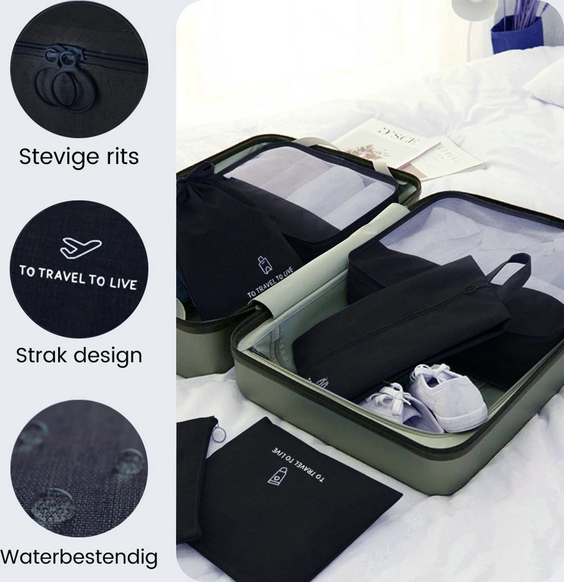 Somstyle Packing Cubes Set 7-Delig – Kleding Organizer Voor Reis Koffer, Backpack En Tas – Travel Bag Opbergzakken – Pack Compression Cubes – Geschikt Voor Kleding, Schoenen En Elektronica – Zwart