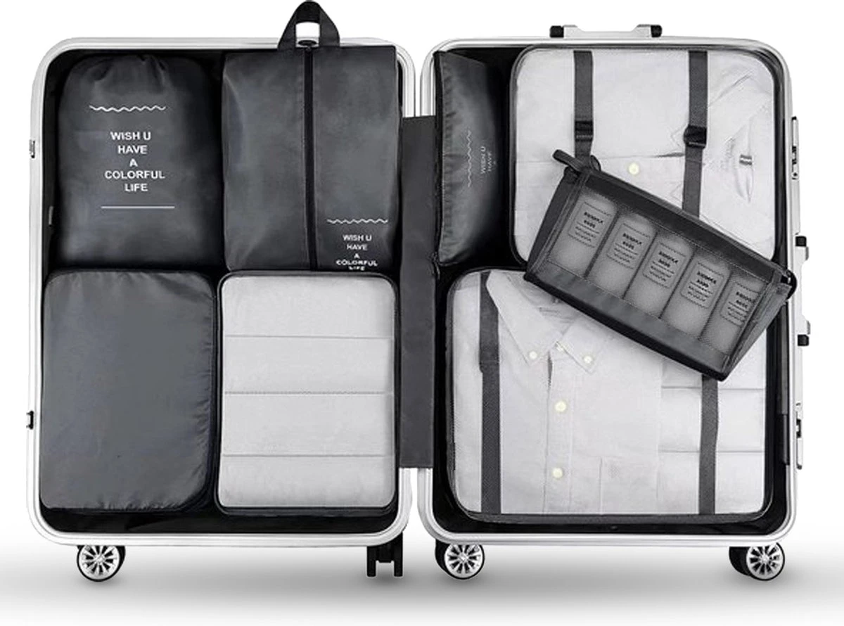 Met de Somstyle packing cubes series Wish You Have A Colorful Life set 8-delig houd u uw reisbagage altijd geordend. Vanaf nu geen zorgen meer dat uw kleding vouwen of kreukels heeft, uw reisbagage vies wordt of dat u niet de juiste bagage kunt vinden en alles overhoop moet gooien. Vanaf nu kunt u eenvoudiger in en uitpakken dan ooit tevoren! U kunt uw reisbagage over de verschillende cubes verdelen om ze vervolgens georganiseerd in uw koffer, backpack of tas mee te nemen. Zo bent u de hele reis verzekerd dat uw reisbaggage, in een handomdraai, altijd te vinden is!