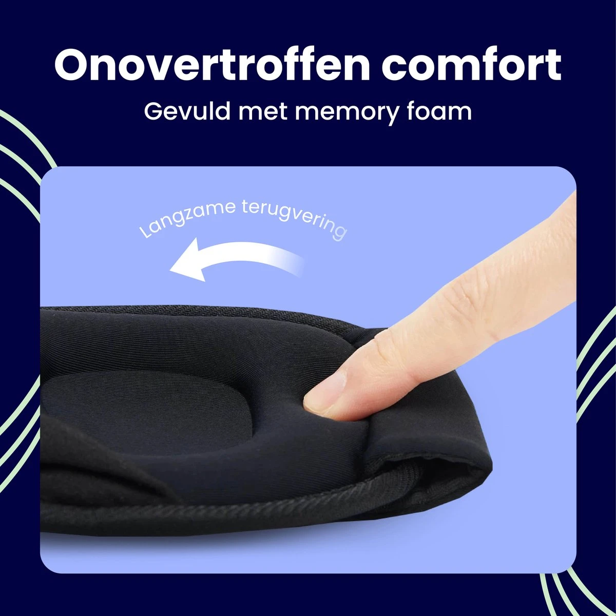 Dit vederzachte slaapmasker is gevuld met duurzaam memory foam; zo kun je slapen zonder druk op de ogen. Kom tot rust met een comfortabel slaapmasker en geniet van een heerlijke nacht.