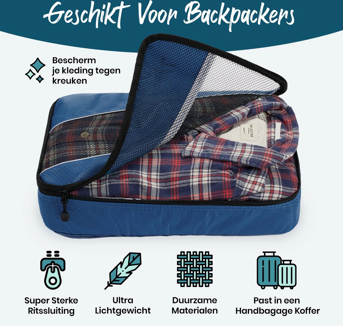 Deze packing cubes maken het inpakken van koffers, tassen en backpacks nog makkelijker! Hierdoor heb je geen irritatie van spullen die niet te vinden zijn, maar extra tijd om te genieten van je onvergetelijke stedentrip, vakantie of reis.