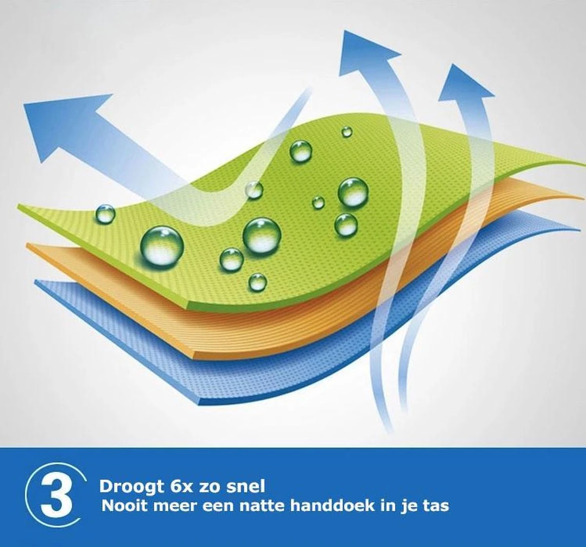 De Travel Towel van TravelGuru is gemaakt van revolutionair microvezel. Door de kleine vezels droogt de handdoek 6x sneller dan een normale handdoek, zijn ze 6x lichter en absorberen ze 6x hun eigen gewicht. Bovendien zijn de handdoeken aan beide zijden extra zacht gemaakt voor optimaal comfort.