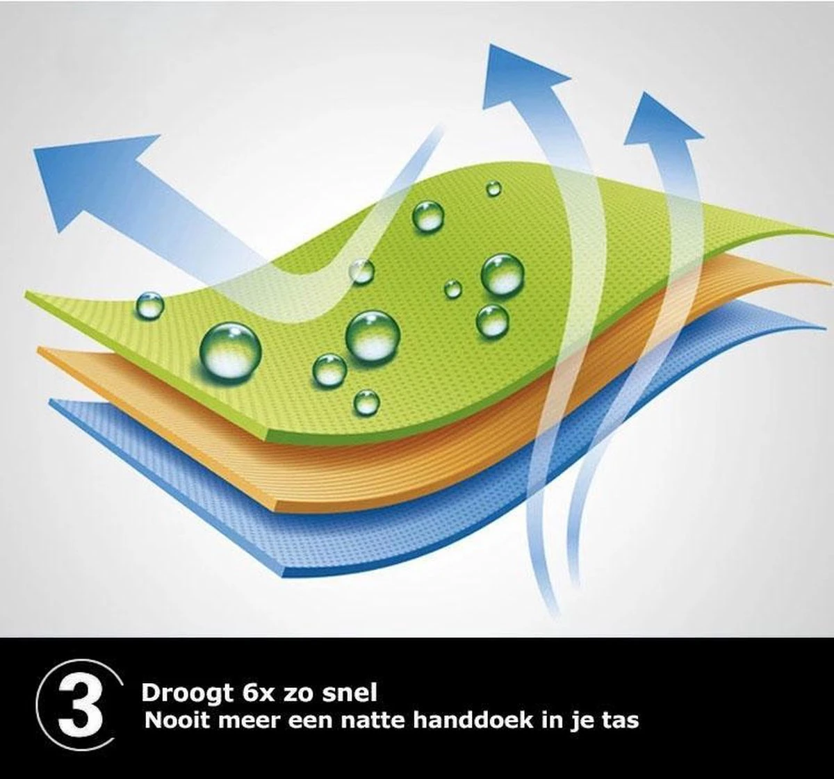 De Travel Towel van TravelGuru is gemaakt van revolutionair microvezel. Door de kleine vezels droogt de handdoek 6x sneller dan een normale handdoek, zijn ze 6x lichter en absorberen ze 6x hun eigen gewicht. Bovendien zijn de handdoeken aan beide zijden extra zacht gemaakt voor optimaal comfort.