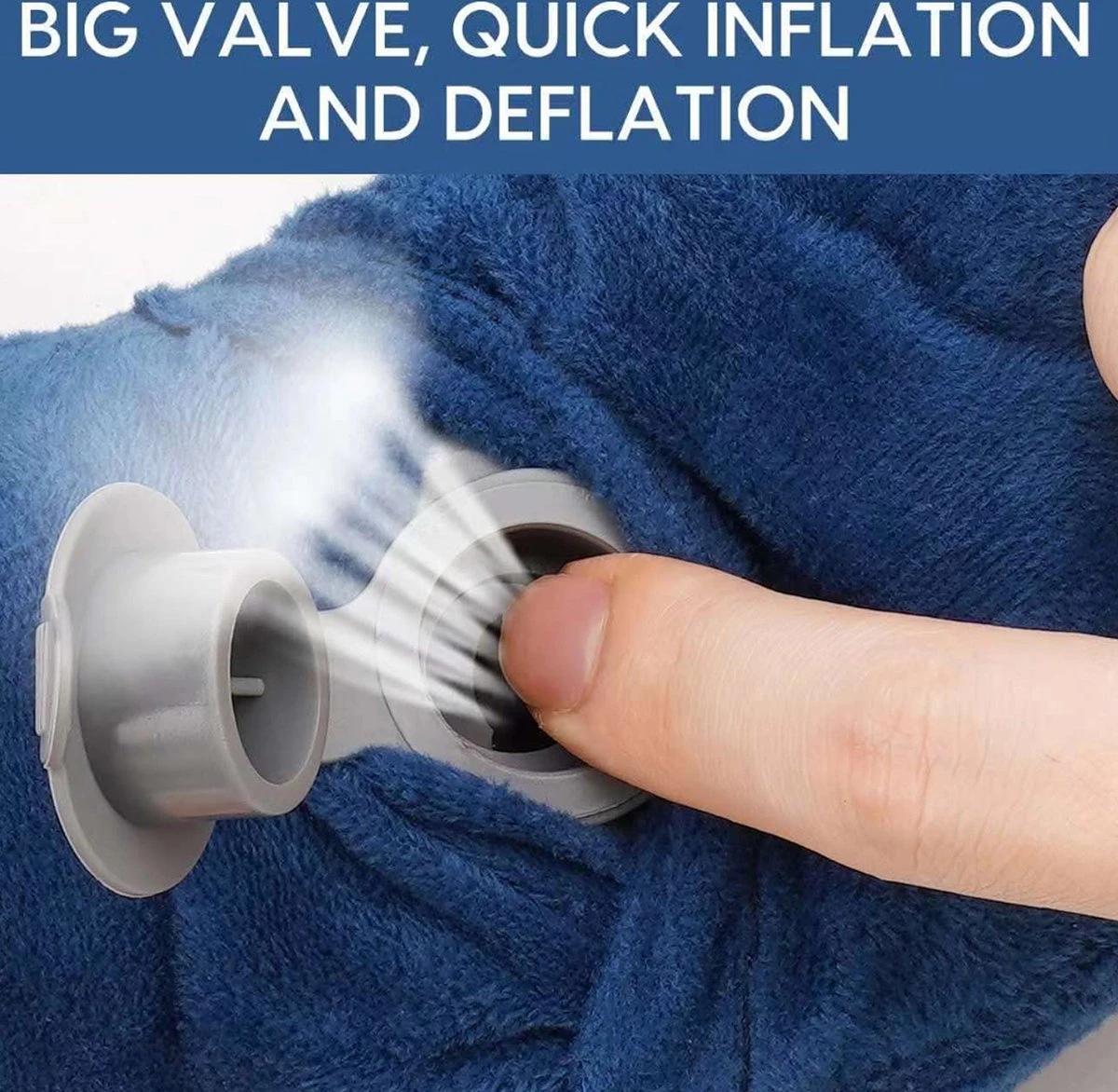 De binnenste airbag is vervaardigd met milieuvriendelijke niet-giftige PVC materialen en BIG VALVE ontwerpen zijn toegepast om 100% comfort van de Travel Pillow te garanderen tijdens het langdurige gebruik. U kunt de kussensteun ook aanpassen door de hoeveelheid lucht aan te passen, toestaand u om de meest comfortabele positie te krijgen.
