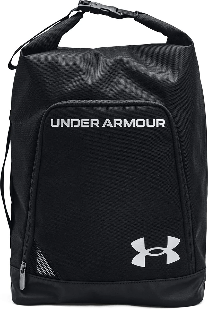 De Under Armour Contain-schoenentas is voorzien van UA Storm-technologie voor een zeer waterbestendige en vlekbestendige afwerking. De onderkant met TPU-coating is stevig en duurzaam, terwijl het ventilatiepaneel van mesh voor extra ademend vermogen zorgt. De bovenste gespsluiting is gemakkelijk te dragen of aan een andere tas te bevestigen.