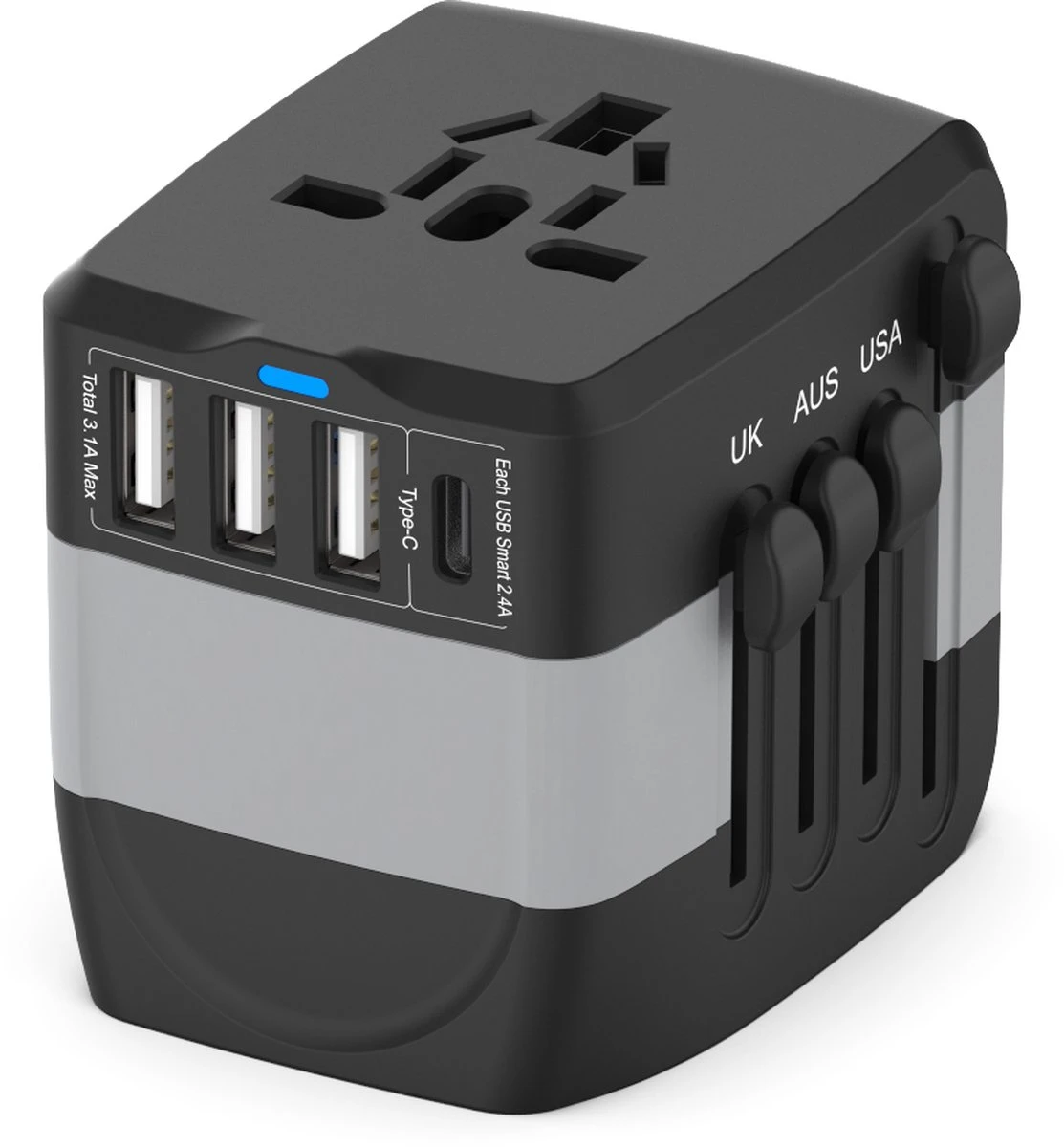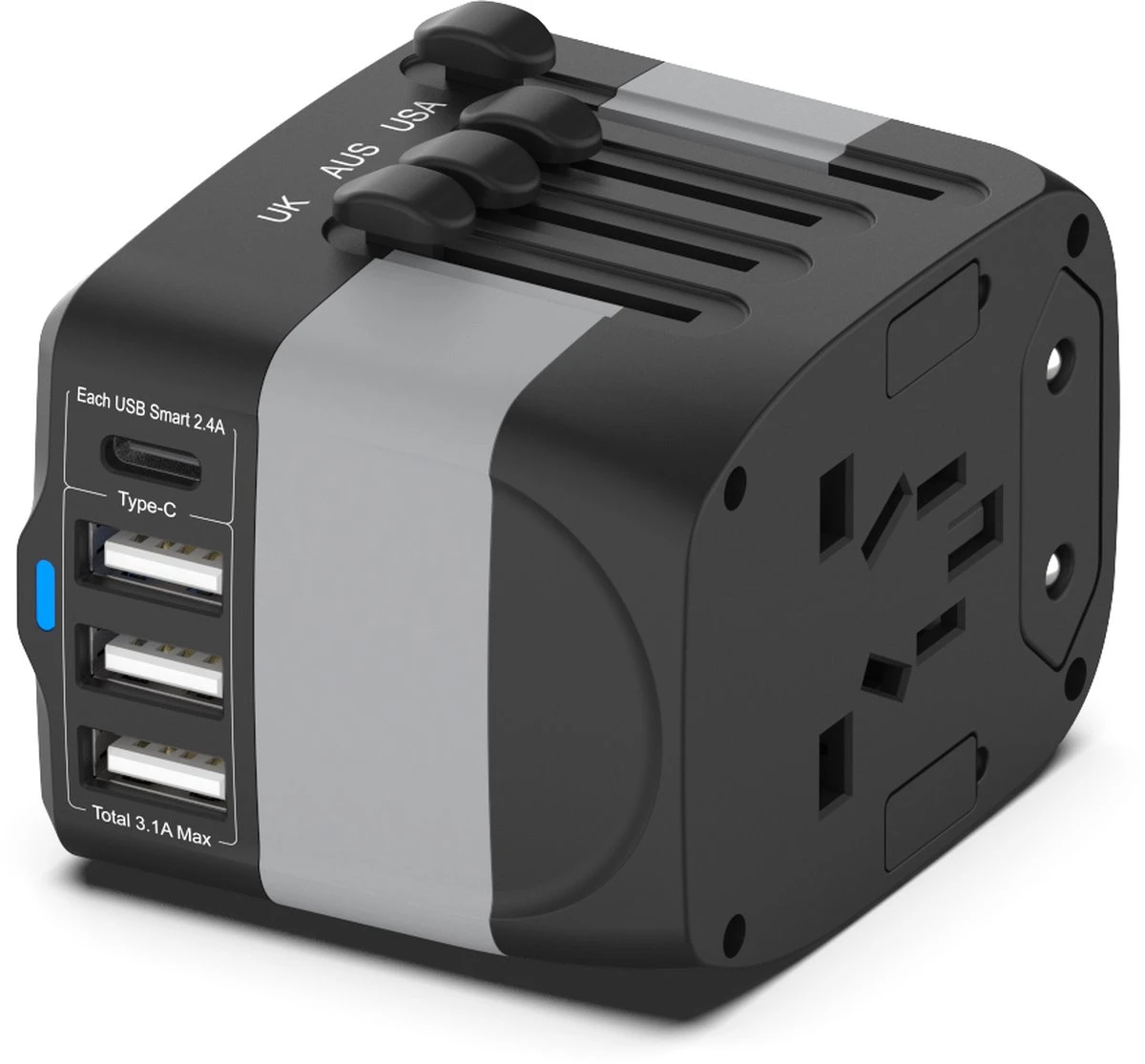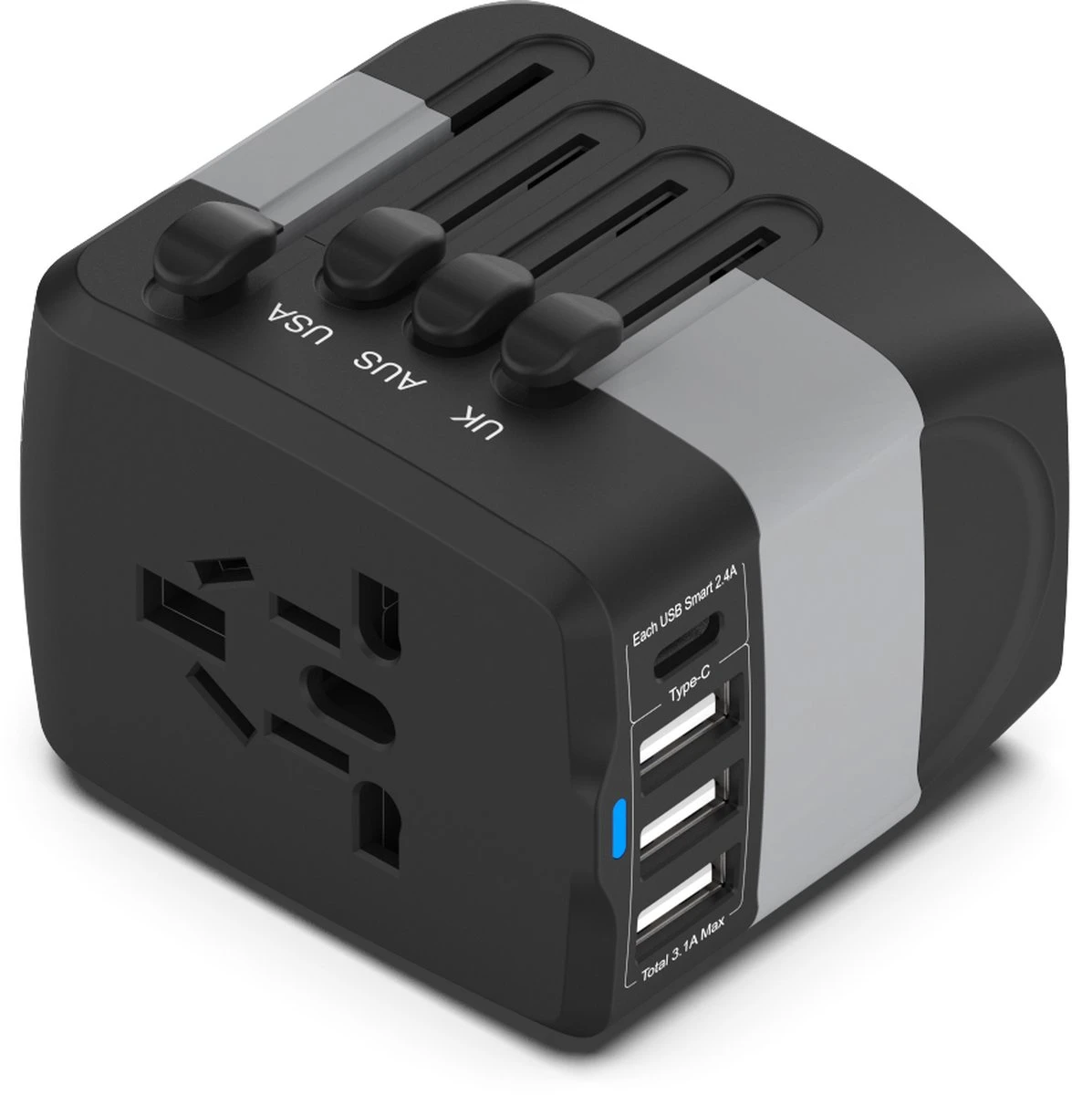 Ter info: landen waar onze reisstekkeradapter dekt EU/Type C: de meeste Europese landen en andere; AU/Type I: Australiรซ, China, Nieuw-Zeeland en meer zoals Argentiniรซ, Fiji, de Salomonseilanden, Uruguay, enz. Type A: Braziliรซ, Colombia, Costa Rica, Cuba, Ecuador, Guam, Jamaica, Japan, Laos, Panama, Peru, Filippijnen, Puerto Rico, Thailand, enz. UK/TYPE G: Engeland, Cyprus, Malta, Maleisiรซ, Nigeria, Saoedi-Arabiรซ, Singapore, Sri Lanka, Tanzania, Verenigde Arabische Emiraten, Jemen, Zimbabwe, enz.