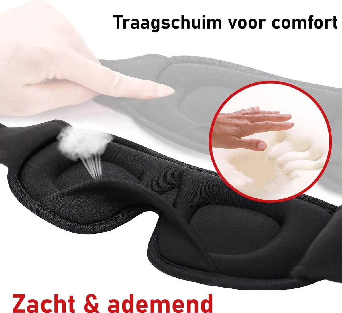 Het slaapmasker ademt en voelt prettig aan door het lichtgewicht traagschuim.