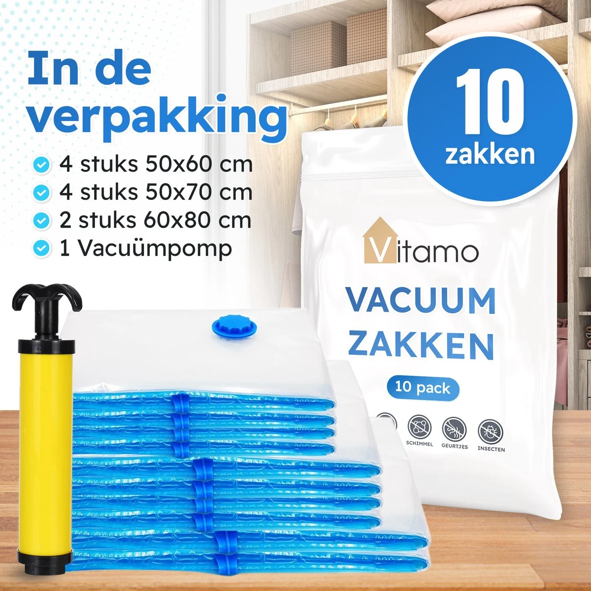Deze set van 10 stuks vacuรผm opbergzakken is ideaal voor het veilig luchtdicht en waterdicht opbergen van je textielgoed. De herbruikbare vacuรผmzakken in 3 handige maten zorgen ervoor dat je je textiel extra compact en beschermd kunt opbergen.