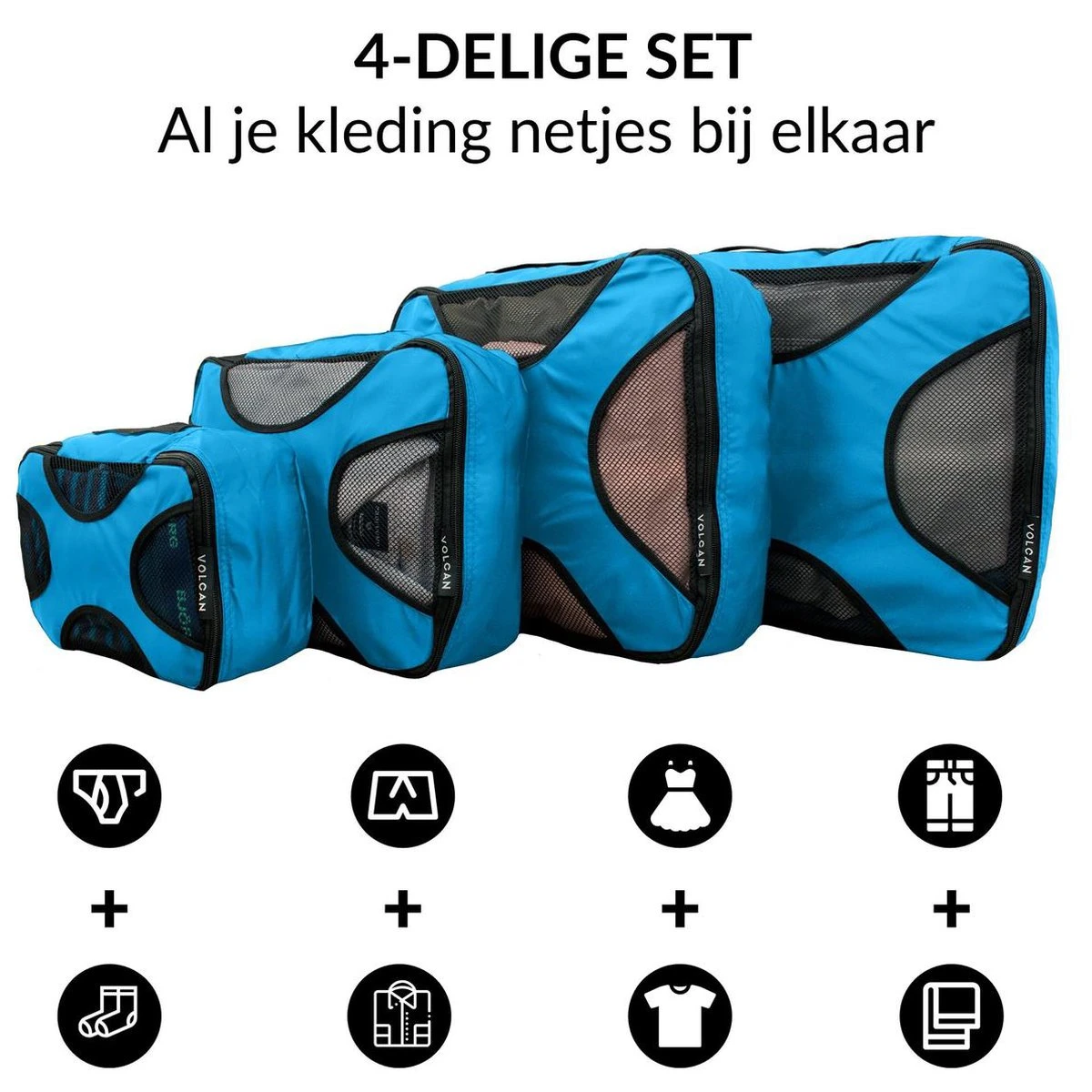Met deze Volcan packing cubes bewaar jij ieder kledingtype in een eigen organizer. Met deze koffer organizer set houdt jij jouw koffer en backpack netjes georganiseerd. Het uniek X-design van deze compression cubes voorkomt kreukels en perst jouw kleding samen. Hierdoor neem jij tot wel 25% meer kleding mee op reis. Eenmaal op bestemming heb jij jouw bagage binnen no-time uitgepakt en kan jouw vakantie meteen beginnen.