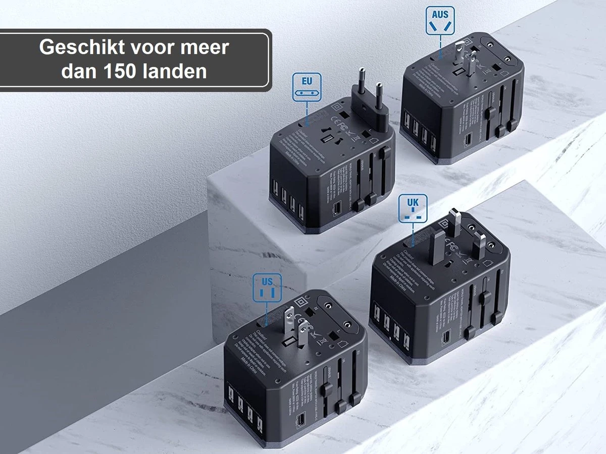 Op vakantie mooie foto’s delen op jouw socials om er vervolgens achter te komen dat je geen juiste stekker hebt om jouw smartphone op te laden. Dat probleem is opgelost met de wereldstekker van Zedar. De reisstekker wordt geleverd met verschillende opzetstukken, waardoor je jouw telefoon, camera, föhn of ander apparaat, in maar liefst 150 landen kunt opladen. Dankzij de meerdere USB en USB-C poorten kan je tot 5 apparaten tegelijk opladen.