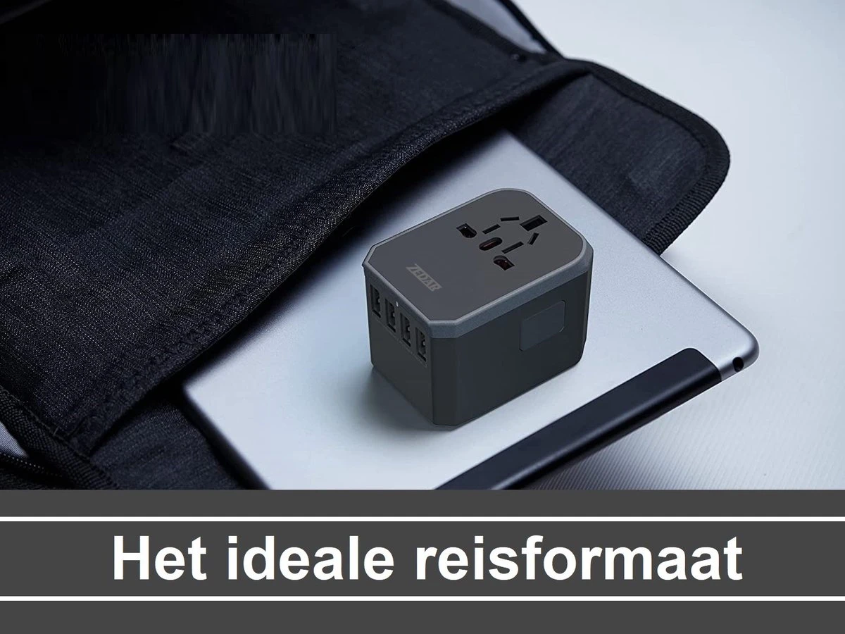 De reisstekker van Zedar is ontworpen om jouw ideale reismaatje te worden. Dankzij het lichte gewicht van 150 gram en compacte model, berg je hem gemakkelijk op in je bagage. De wereldstekker heeft een upgrade gehad waardoor je het in maar liefst 150 landen kunt gebruiken. Daarnaast beschikt de reisstekker over 4 USB en 1 USB-C aansluiting, hiermee is het een echte multitasker en laadt je naast jouw smartphone ook de tablet of ander andere apparaten op.
