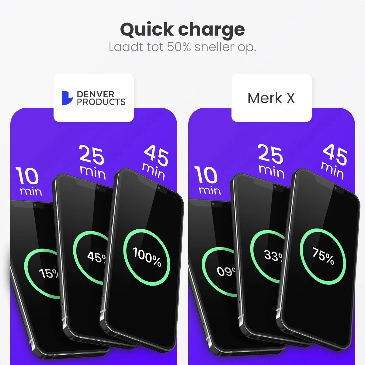 Apparaten tegelijk opladen, zo’n laadblok is druk aan het werk. Daarom heeft de Universal Travel Charger van Denver Products slimme features. Als er apparaten tegelijkertijd zijn aangesloten, verdeelt het Smart Block zelf het vermogen gelijkmatig over de apparaten. Dit voorkomt dat de reisstekker oververhit raakt.