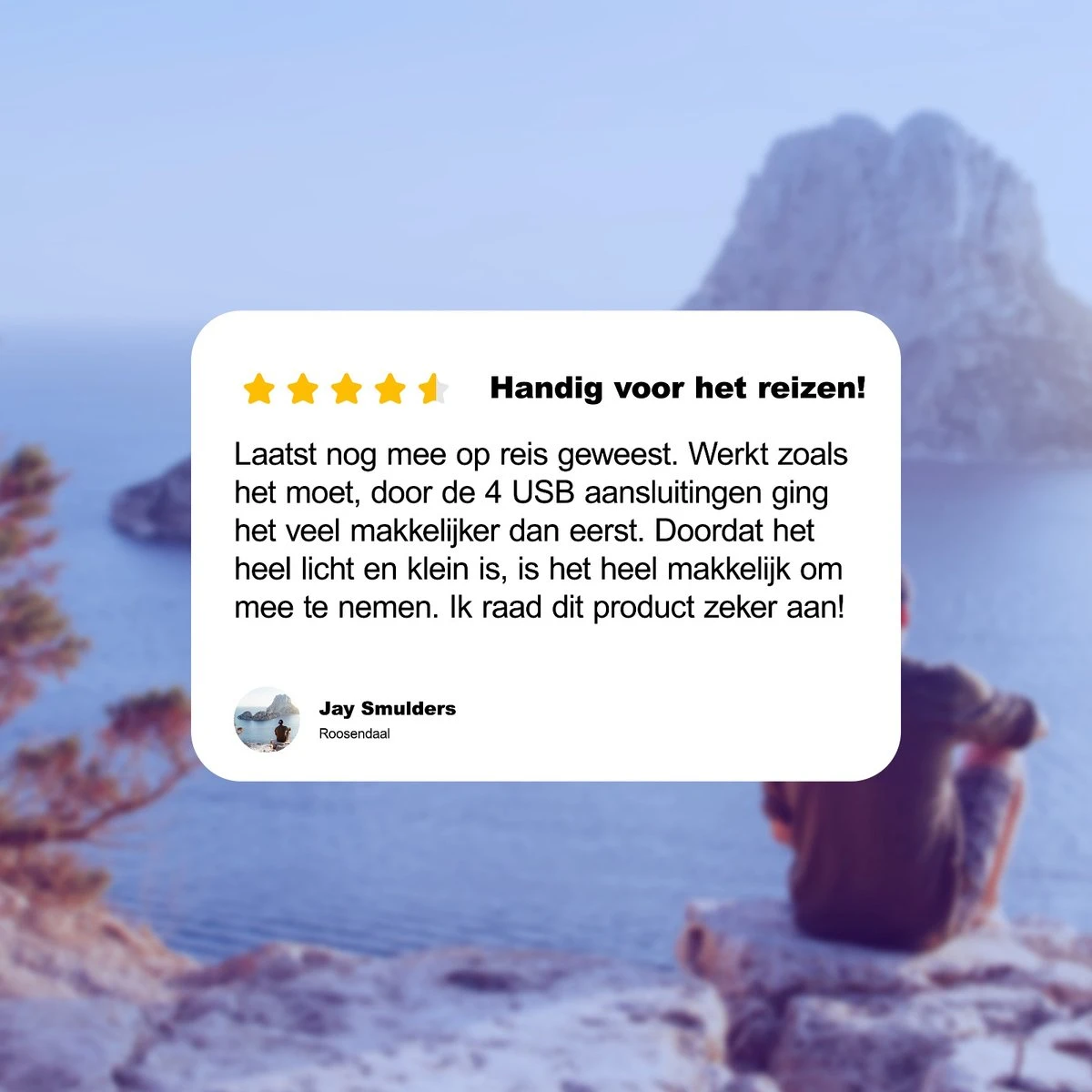 Waar je ook bent in de wereld, door de universele stekker kan jij in รฉรฉn schuif beweging overal jouw elektronica opladen. Voeg hier een veilige kinderbescherming, een bescherming tegen kortsluiting, vier handige poorten en Quick Charge aan toe, en je snapt dat deze travel plug niet in je koffer mag ontbreken.