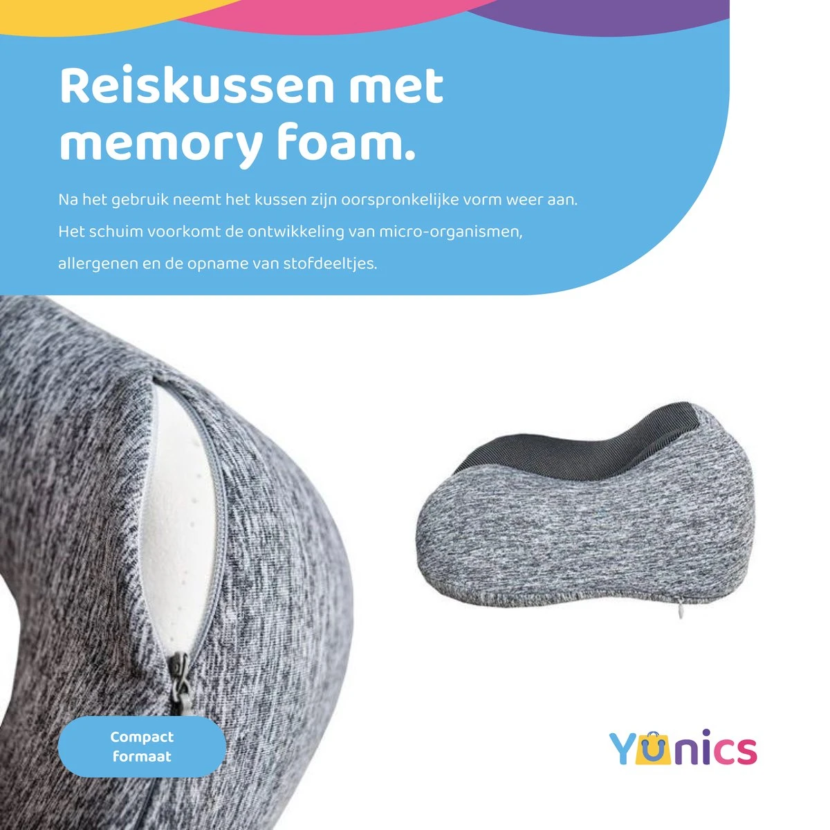 YUNICS® Reiskussen – Nekkussen – NeksteunTraagschuim – Inclusief Oogmasker, Oordopjes En Reistas