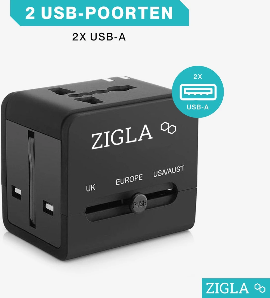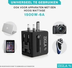 Vind jij het ook zo vervelend wanneer je in het buitenland bent, aankomt op je adres en je je telefoon of ander apparaat niet kunt opladen omdat je stekker niet in het stopcontact past? Of wil je graag 2 apparaten tegelijk opladen met 1 stekker? Dan is deze ZIGLA reisstekker zeker wat voor jou! Met deze reisstekker zul je nergens in de wereld problemen hebben met het opladen van je apparatuur. Deze reisstekker is namelijk voorzien van stekkers voor 150+ landen waaronder Europa, Verenigd Koninkrijk, Azië, Australië, Afrika en de Verenigde staten. Tevens beschikt de ZIGLA reisstekker over een universele ingang waar alle type stekkers over de gehele wereld in passen!