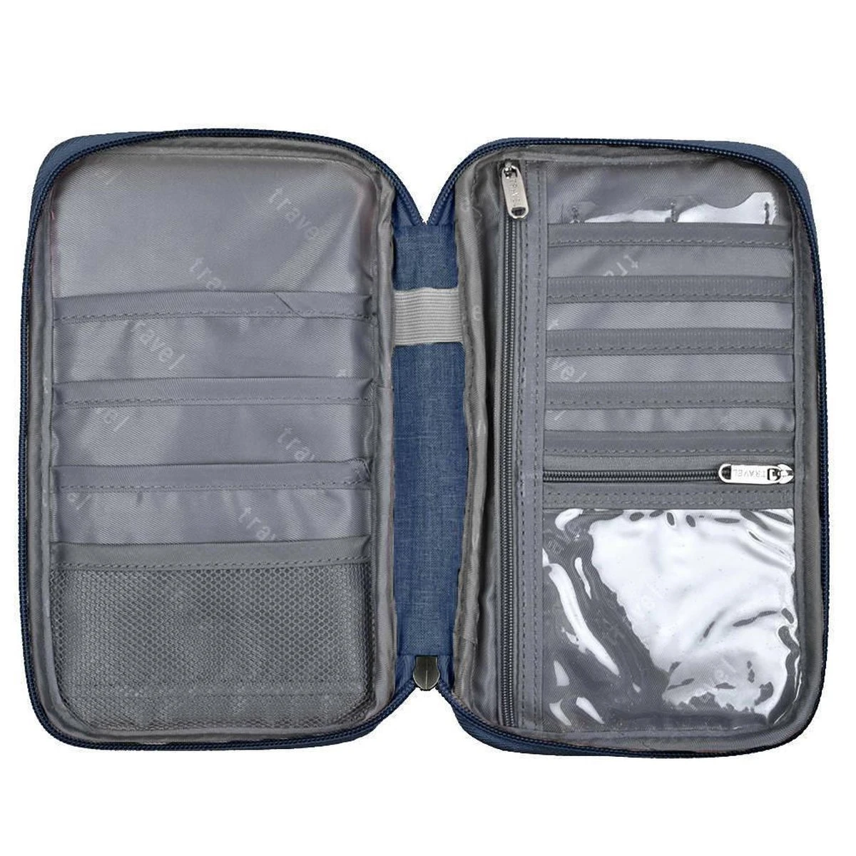 De reisdocumentenhouder heeft ruimte voor het opbergen van minimaal 5 paspoorten. Ook zijn er twee afsluitbare ritsvakken voor het opbergen van bijvoorbeeld vliegtickets, muntgeld, briefgeld of sleutels. Ook heeft het etui 2 handige (transparante) vakjes speciaal voor het bewaren van geheugenkaarten.